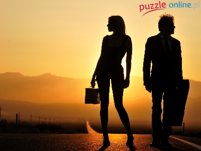 Puzzle Zachód słońca, Kobieta, Mężczyzna, Droga
