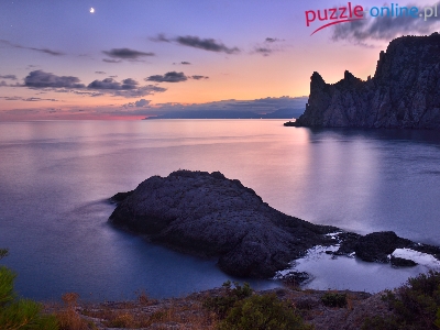 Puzzle Chmury, Morze, Skały, Księżyc
