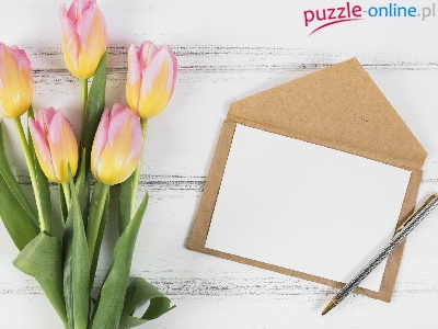 Puzzle Koperta, Tulipany, Bukiet, Długopis