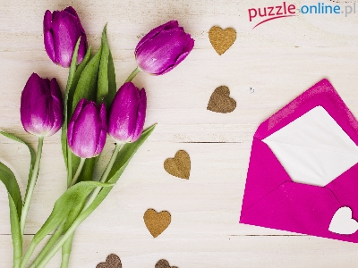 Puzzle Koperta, Tulipany, Bukiet, Serduszka