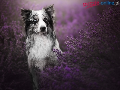 Puzzle Border collie, Pies, Lawenda