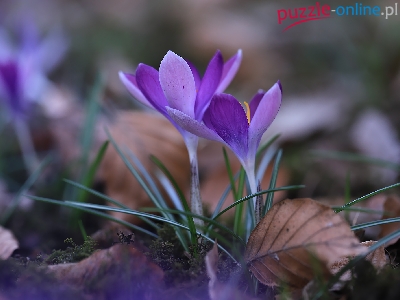 Puzzle Kwiaty, Krokusy, Dwa, Fioletowe