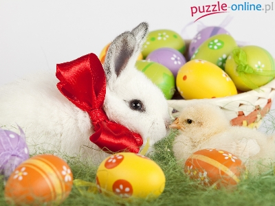 Koszyk, Kurczak, Wielkanoc, Pisanki, Królik