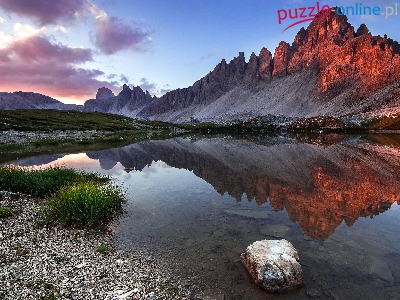 Góry, Jezioro Laghi dei Piani, Chmury, Dolomity, Włochy, Góra Paternkofel, Roślinność