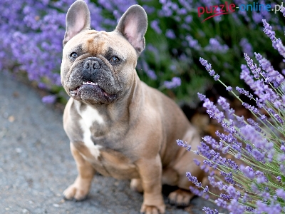 Puzzle Buldog francuski, Pies, Siedzacy, Lawenda