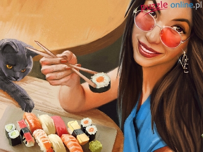 Puzzle Kot, Kobieta, Sushi, Grafika