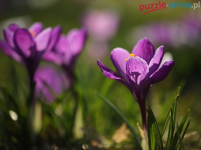 Puzzle Krokus, Fioletowy, Kwiat, Rozmyte tło