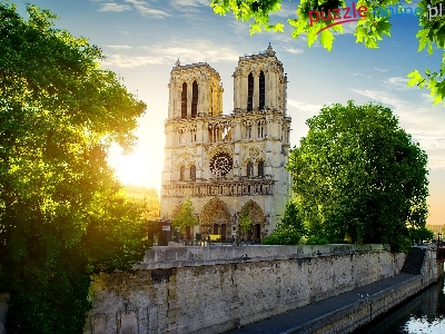 Puzzle Paryż, Katedra Notre Dame, Drzewa, Francja