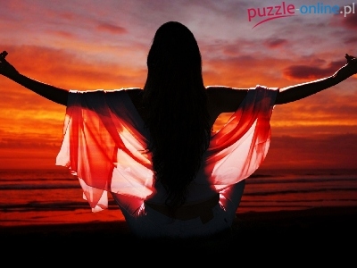Puzzle Kobieta, Zachód, Słońca, Medytacja