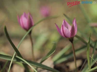 Puzzle Kwiat, Różowy, Tulipan, Źdźbła