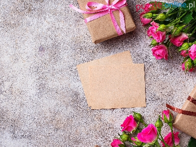Różowe, Bukiety, Kartki, Pąki, Kwiaty, Róże, Prezenty