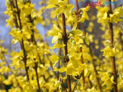 Kwiaty, Forsycja, Krzew, Żółte, Gałązki