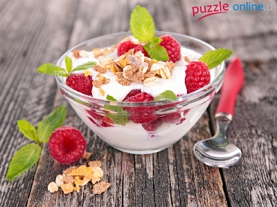 Jogurt, Deser, Maliny, Mięta, Miseczka