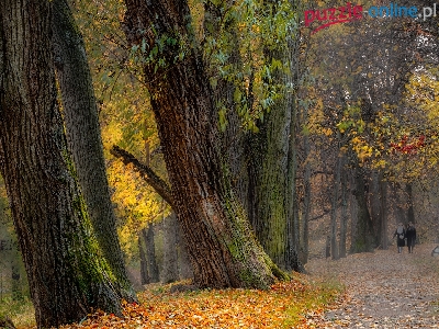 Park, Drzewa, Liście, Alejka, Jesień, Kobiety, Ławka