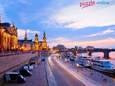 Tarasy Bruhla, Most, Katedra Świętej Trójcy, Drezno, Statki, Przystań, Promenada, Niemcy, Rzeka Łaba, Kościół