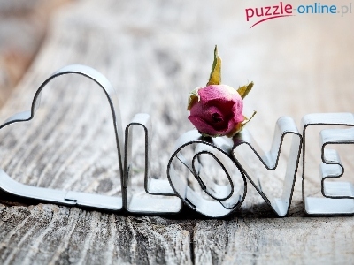 Puzzle Miłosne, Róża, Kwiat, Napis
