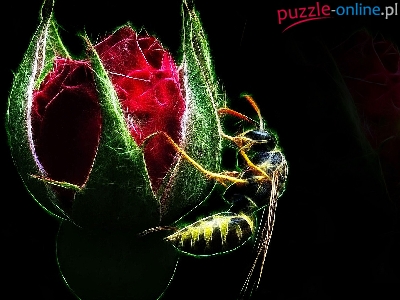 Czerwona, Fractalius, Czarne, Róża, Pszczoła, Kwiat, Pąk, Tło