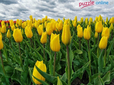 Puzzle Pole, Żółte, Tulipany, Chmury