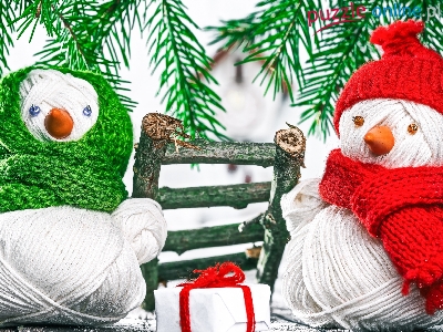 Bałwanki, Świąteczna, Włóczka, Drabina, Gałązki, Czapki, Dekoracja, Szaliki, Prezent