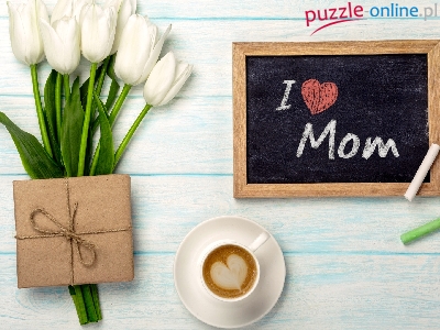 Tulipany, Kreda, Tabliczka, Filiżanka, Prezent, Dzień Matki, Kawa, Napis