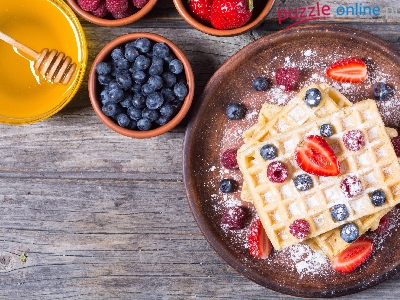 Miód, Truskawki, Gofry, Jagody, Maliny
