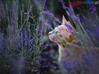 Rośliny, Kwiatki, Kot, Pszczoła, Niebieskie