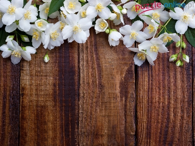 Puzzle Jaśminowiec wonny, Białe, Kwiaty, Drewno