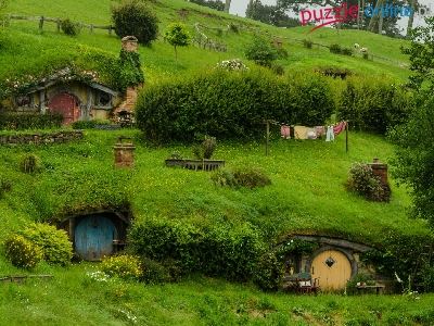 Atrakcja turystyczna, Hobbit, Nowa Zelandia, Domy, Plan filmowy Hobbiton, Wzgórze, Miejscowość Matamata