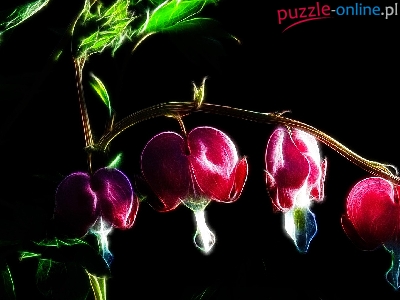 Kwiatki, Czarne, Fractalius, Gałązka, Różowe, Serduszka okazałe, Tło