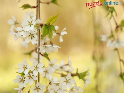 Drzewo owocowe, Wiśnia, Białe, Kwiaty, Gałązki