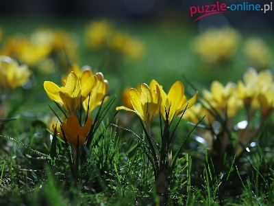 Puzzle Kwiaty, Żółte, Krokusy, Kępki