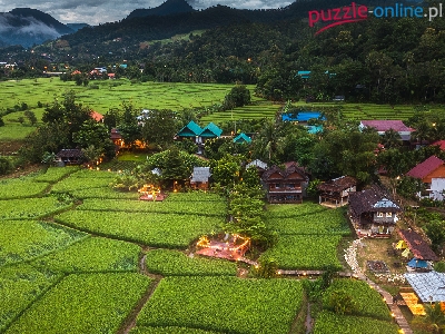 Miejscowość, Prowincja Mae Hong Son, Pola, Góry, Drzewa, Domy, Tajlandia, Mae La Noi, Lasy