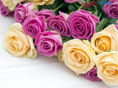 Puzzle Róże, Różowe, Żółte, Bukiet