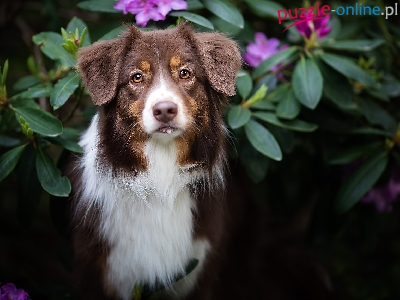 Mordka, Kwiaty, Pies, Owczarek australijski, Krzewy