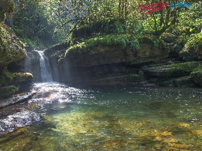 Skały, Rzeka, Las, Omszałe, Wodospad