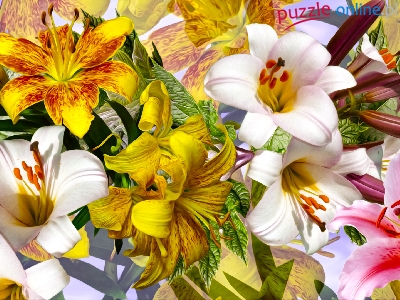Puzzle Lilie, Kwiaty, Kolorowe, Grafika