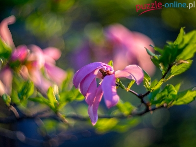 Puzzle Magnolia, Gałąź, Kwiaty, Rozmyte tło