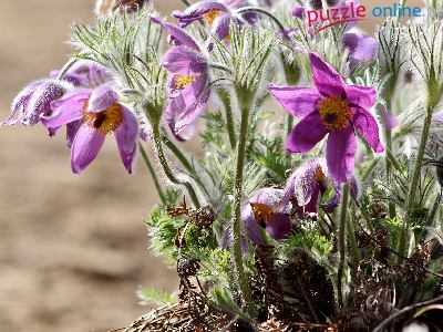 Puzzle Fioletowe, Wiosenne, Kwiaty, Sasanki