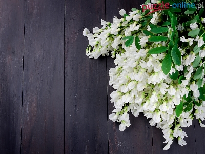 Puzzle Akacja, Białe, Kwiaty, Deski