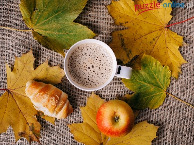 Puzzle Jabłko, Kawa, Filiżanka, Liście