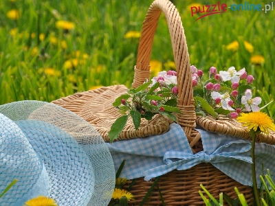 Puzzle Kwiaty, Wiosna, Koszyk, Kapelusz