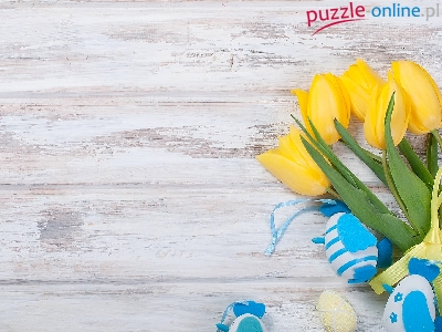 Żółte, Zawieszki, Wielkanoc, Pisanki, Kwiat, Tulipany, Deski