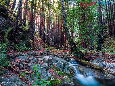 Drzewa, Strumień, Stany Zjednoczone, Drzewa, Las, Park Narodowy Redwood, Kalifornia