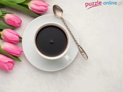 Filiżanka, Łyżeczka, Różowe, Tulipany, Kawa