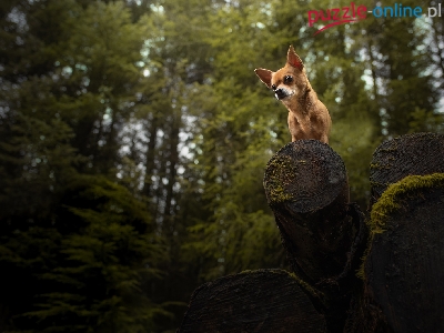 Puzzle Drewno, Pies, Chihuahua krótkowłosa, Las