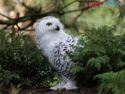 Puzzle Zielone, Ptak, Sowa śnieżna, Gałązki