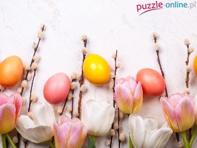 Puzzle Tulipany, Wielkanoc, Pisanki, Bazie