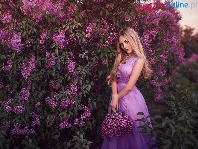 Puzzle Liliowy, Dziewczyna, Blondynka, Bez