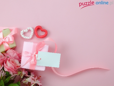 Kwiaty, Prezenty, Różowe, Serca, Walentynki, Róże, Tło