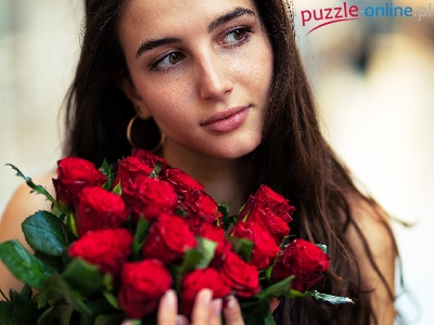 Puzzle Bukiet, Dziewczyna, Szatynka, Róż